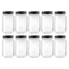 - 1. Noveinks 16 OZ CLEAR PLASTIC JAR : The package includes 10 pack 16 oz clear plastic jars with black metal lids. PLASTIC Jar Product measures 2.8 Inches Diameter, 5.3 Inches Height. Designed with a unique liner to maintain freshness longer than other containers, they are durable and refillable.
