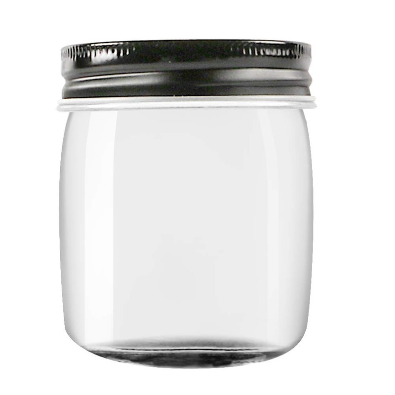 - 1. Noveinks 8 OZ CLEAR PLASTIC JAR : The package includes 24 pack 8 oz clear plastic jars with black metal lids. PLASTIC Jar Product measures 2.8 Inches Diameter, 3.6 Inches Height. Designed with a unique liner to maintain freshness longer than other containers, they are durable and refillable.