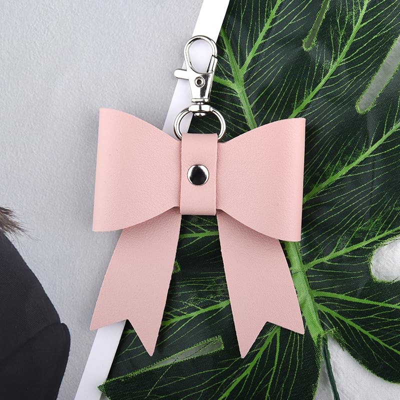 - Leather Handbag Purse Charm for Handbags Purse: The bow part is made of high-quality leather, with a delicate surface, soft and comfortable to the touch, the leather bow key ring can be used for a lone time, cute pink bow knot keychain for girls women, elegant bag accessories charms bow, leather bow car keychain for women girls