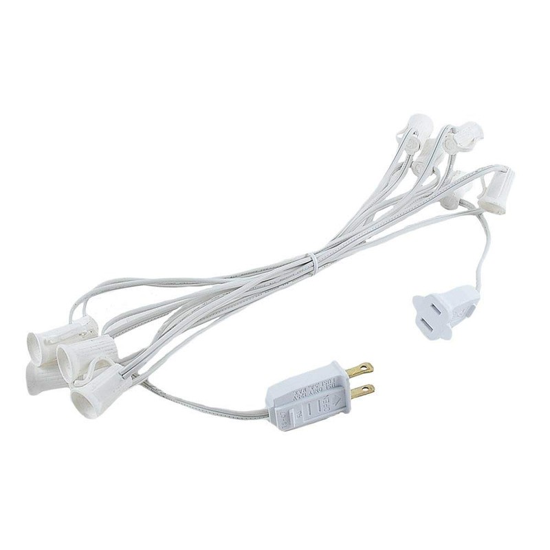 • Each stringer comes with a fused 5 amp male plug which makes this product safe for indoor and outdoor use and is connectable end to end 7 times with a max run of 70' using a 7 watt bulb.