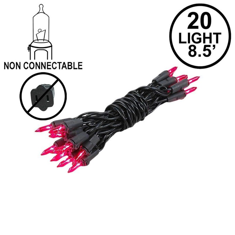 Our non-connectable (no end-to-end plug) 20 light set of Black Wire Christmas mini lights is perfect for craft projects. Some uses include illuminating glass blocks or wine bottles because these mini light strings do not have the bulky female plug at the end of each string. These short strings are also perfect for stringing on wreaths or garland during the holiday season. Each mini light set is made of 22 gauge wire and has snap-lock sockets to keep the bulb and socket securely together. We also use our extended-life commercial grade 3,000 hour bulbs that are shunted so if one bulb burns out the rest will remain lit. UL listed for indoor and outdoor use. This set is non-connectablemeaning each set has only has a male plug with a 24" lead wire Each Set Has 20 Bulbs and 4" Spacing Between Bulbs Making Each String 8.5 Feet Long Every Set Comes With 2 Replacement Bulbs, 1 Flasher Bulb, and Extra 2 Fuses UL Listed For Indoor and Outdoor Use Lighting Application Examples include: Use on tree's, bushes, hedges, fences, pillars, weddings, holiday's, prom, dance functions, restaurants, bars, patio's, or wherever decoration lighting is wanted!; Every Novelty Lights, Inc. product comes with a 100% guaranteed satisfactionwarranty! Thank you for your purchase!!!