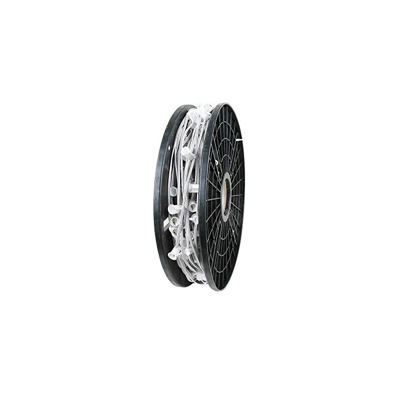 Novelty Lights 250 Foot C9 Christmas Stringer Bulk Reel, White Wire, 6" Spacing, Intermediate Base (C9/E17), SPT-1 8 AMP Wire