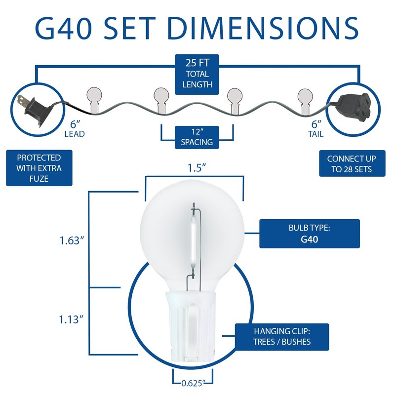 - COLORFUL DESIGN: 25 translucent orange, green, and pure white LED globe bulbs create a vibrant and festive display.