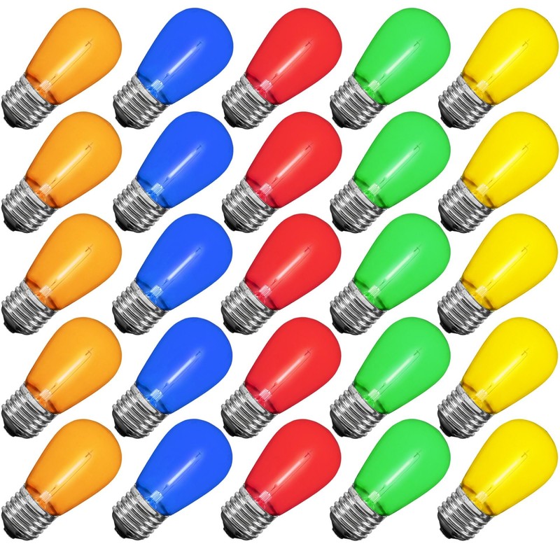 Novelty Lights Outdoor String Light Replacement Bulbs, 25 Pack S14 LED Edison Shatterproof Plastic, E26 Base, 30,000-Hour Lifespan, Multicolor