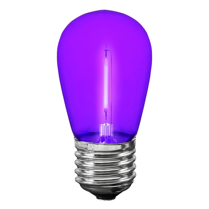 Novelty Lights Outdoor String Light Replacement Bulbs, 5 Pack S14 LED Edison Shatterproof Plastic, E26 Base, 30,000-Hour Lifespan, Purple