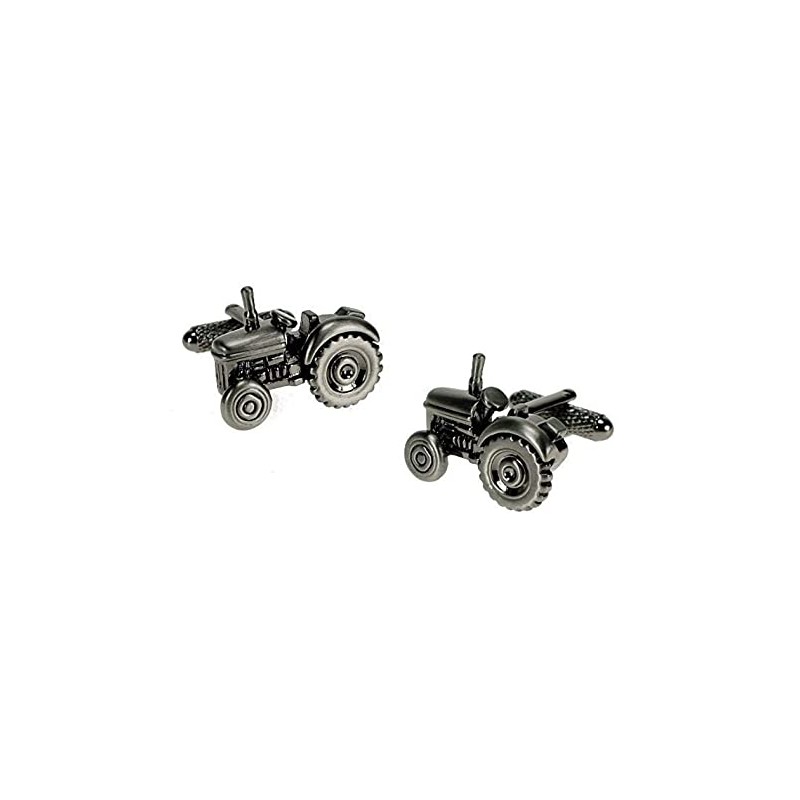 A pair of burnished silver-plated torpedo link cufflinks in the shape of a Cabless Traditional Farm Tractor.Each cufflink measures approximately 2.7cm x 2cm, and they come supplied in a padded gift box.