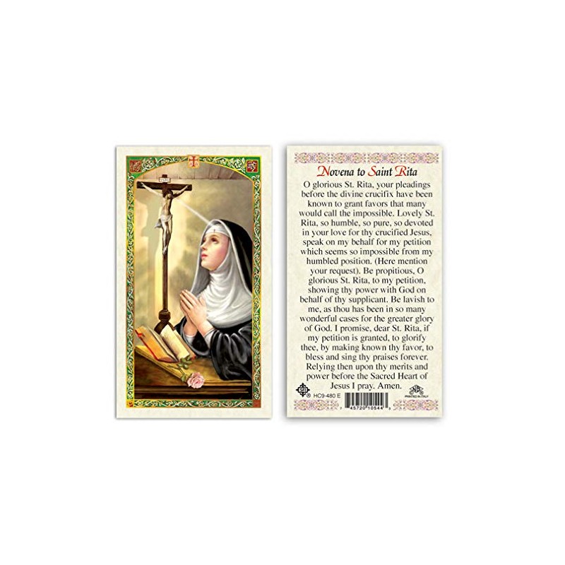 Novena to Saint Rita Laminated Prayer Cards - Pack of 25- English