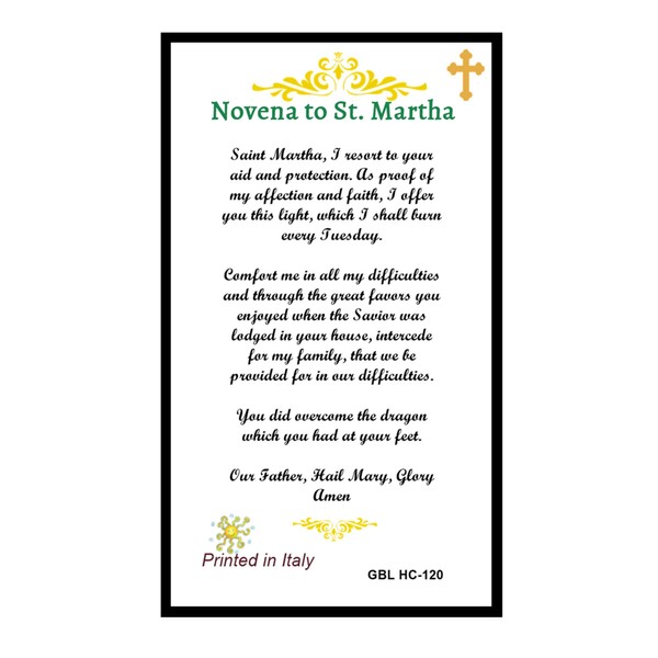 Novena to St Martha Laminated Prayer Card Blessed by Pope Francis
