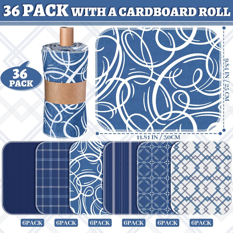 Noveread 36 Pack Reusable Paper Towels Washable Paperless Towels Rolls Reusable Toilet Bidet Towels Bulk Flannel Cotton Cloth Towels Wipes Bathroom Napkins with Cardboard(Blue, Geometric Style)