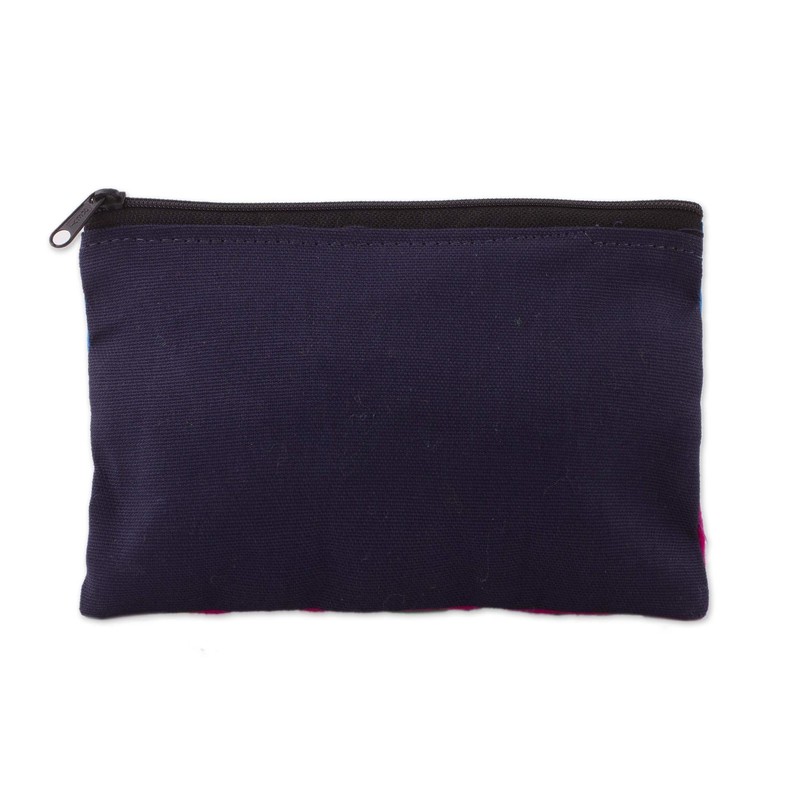 NOVICA Artisan Handmade Cotton Blend Cosmetic Case Patchwork Fair Trade with Peruvian Landscape Handbags Multicolor Embellished Folk Art ' Blue Alpaca Afternoon'