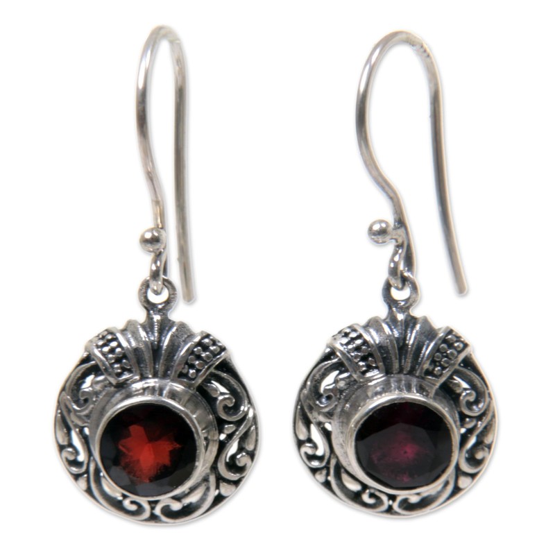 About this item: Inspired by the dainty dots that decorate ladybugs, artisan Wayan Asmana creates these sterling silver earrings. The round dangle earrings are centered by sparkling red garnets totaling 2 carats. .925 Sterling silver earrings and hooks. Earrings measure 1.2" by 0.5".