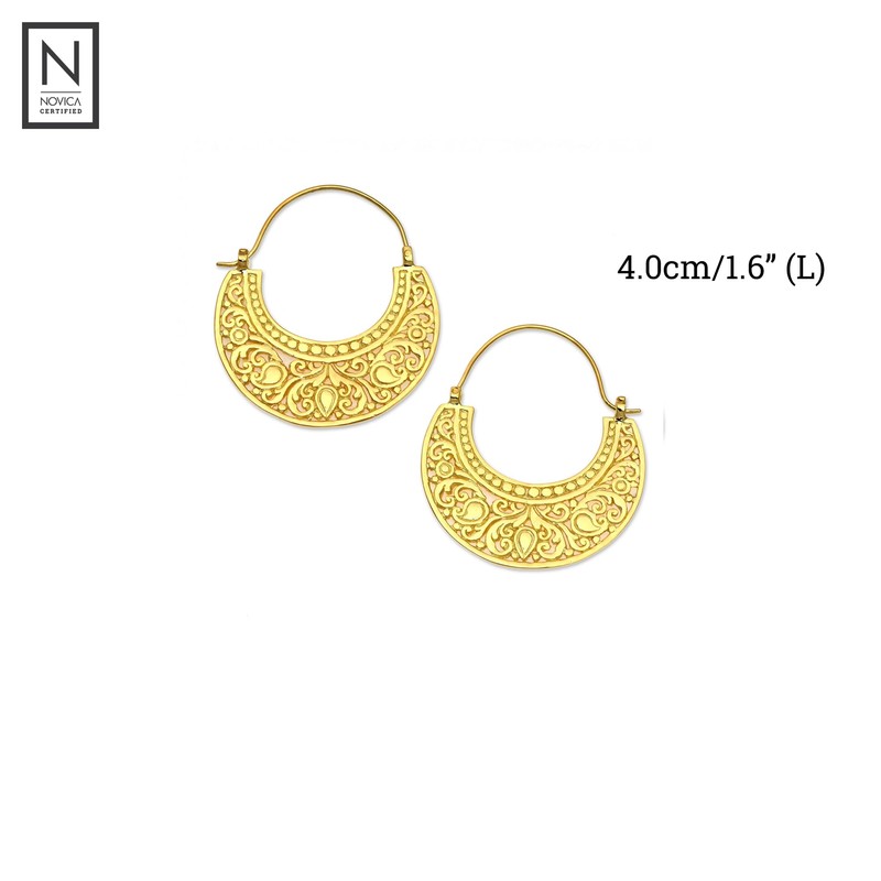 NOVICA Artisan Handmade Gold Vermeil Hoop Earrings Ornate 22k from Indonesia Plated Sterling Silver No Stone Statement [1.6 in L x 1.4 in W x 0 in D] ' Garden of Eden'