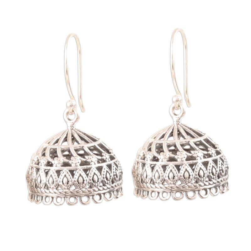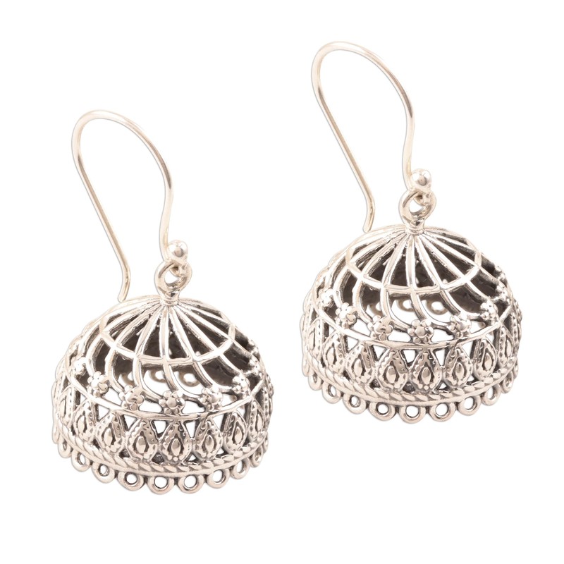 NOVICA Artisan Handmade Sterling Silver Dangle Earrings Openwork Jhumki from India No Stone Bollywood [1.3 in L x 0.7 in W x 0.7 in D] ' Intricate Jhumki'