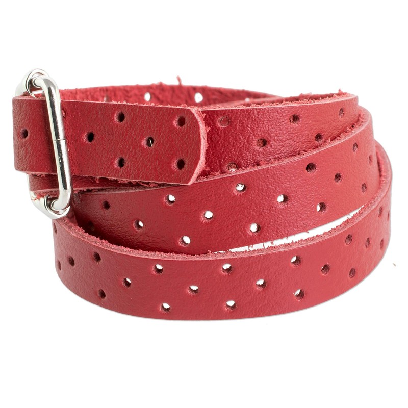 About this item: Artisan Rebeca Zamora of Costa Rica crafts recycled leather into this bold and colorful wrap bracelet. Crimson in color, the bracelet closes with a stainless steel buckle. Small holes along the band add texture to the design.