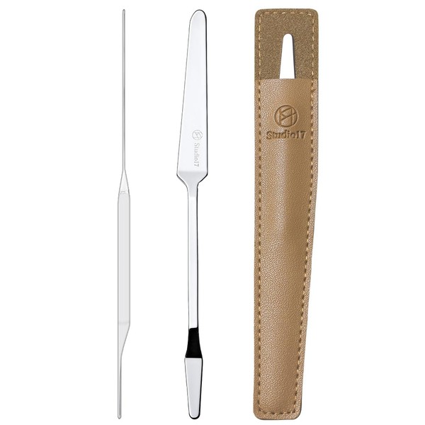 NOVIIML oundation Spatula Made of Stainless Steel | Professional Makeup Spatula for Even Application of Foundation | Double Edged Spatula for Small Area of Face | Pouch Included for Clean Storage