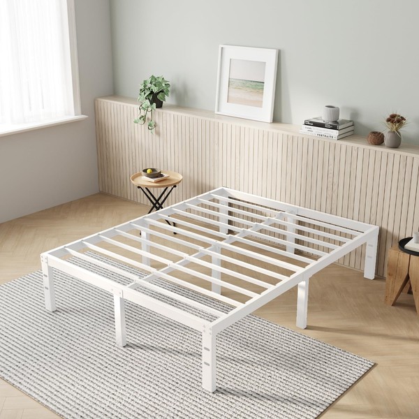 - 【Stylish Design】Our full size bed frame features a sleek and minimalist design with a matte white finish, adding a contemporary touch to any bedroom.