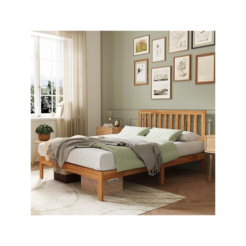 Novilla Queen Bed Frame with Headboard, Solid Wood Bed Frame Foundation with Wood Slat Support, No Box Spring Needed, Easy Assembly