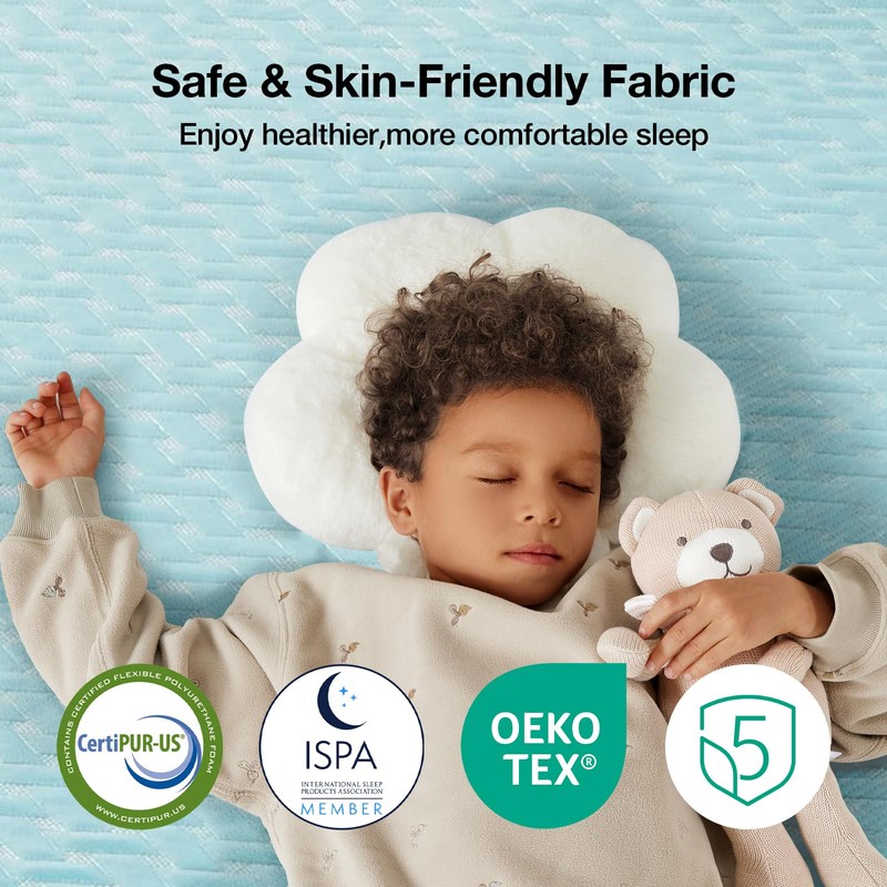 • Cooling Tech Mattress Pad: Stay refreshed with this cooling bed topper made of 220gsm breathable fabric and 47% cooling fiber. It helps disperse heat and moisture, while the ultra-fine knit texture feels smooth and gentle on skin, making it a great choice for hot sleepers looking for comfort.