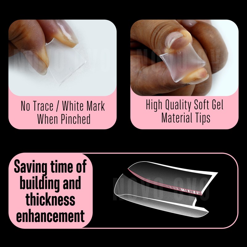 - PROFESSIONAL-GRADE RESULTS: Whether you’re a seasoned nail technician or a DIY enthusiast, the NOVO OVO Extra Thick Nail Tips are your ideal choice for achieving salon-quality results effortlessly. We offer Almond, Coffin, Oval, Square, Duck Feet, Curved Square, Curved Stiletto for manicures, and Tapered Square for pedicures, empowering you to create stunning nail enhancements with confidence and precision.