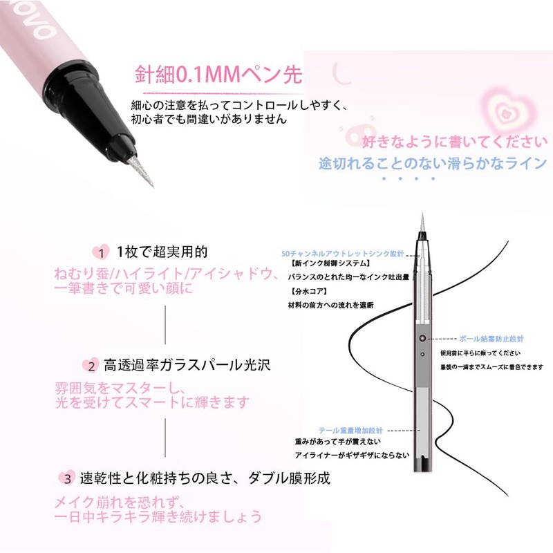 NOVO Precision Eyeliner, Extra Fine Eyeliner, 0.001mm Tip, Extra Fine Smooth Eyeliner, Smearproof Teardrop Bag Eyeliner, Waterproof and Sweat Resistant, Ultra Fine Color, Long Lasting Color, Smear