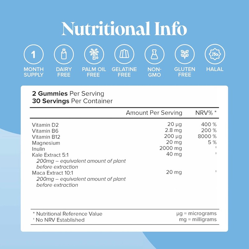 - GUT HEALTH AND ENERGY PRODUCTION - Estro-Balance Gummies include Inulin, a prebiotic fiber, supporting gut health, vital for overall well-being. Vitamin B12 and maca extract, known for their ability to contribute to a reduction in tiredness and fatigue supporting energy yielding metabolism (EFSA).
