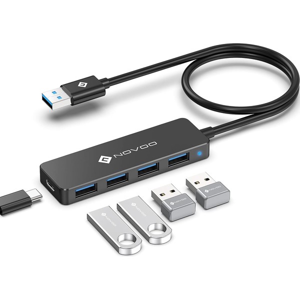 - Portable compact and durable: NOVOO multiport hub is equipped with an intelligent chip, prevents overcurrent, short circuit and high temperatures, ensures a more stable and faster transmission. The cable is abrasion resistant and durable enough, hub is designed to be thin, lightweight and portable, making it easy to take anywhere.