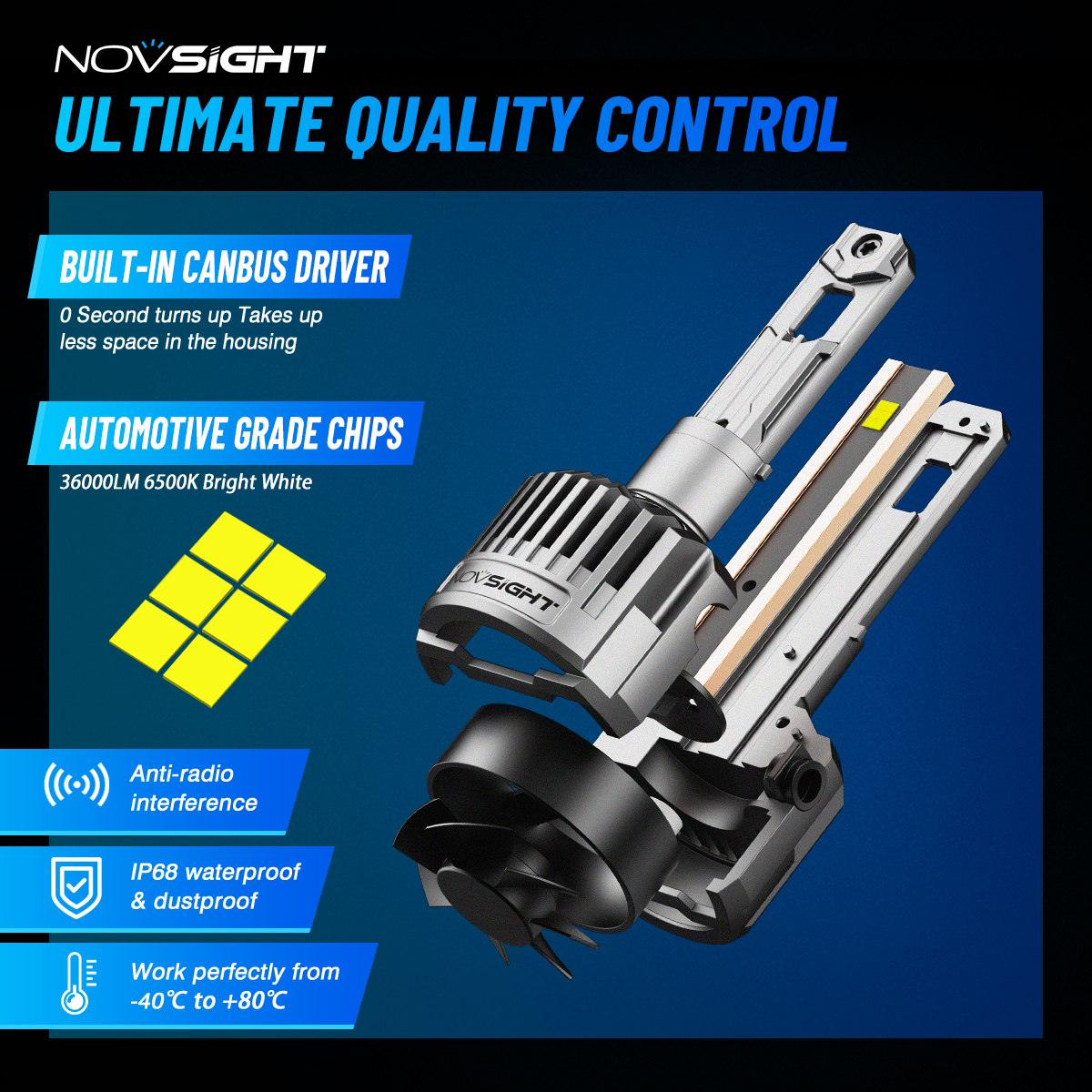 NOVSIGHT 4x 9005 H11 Combo LED Headlights High Low Beam Bulbs 6500K Super White Bright US