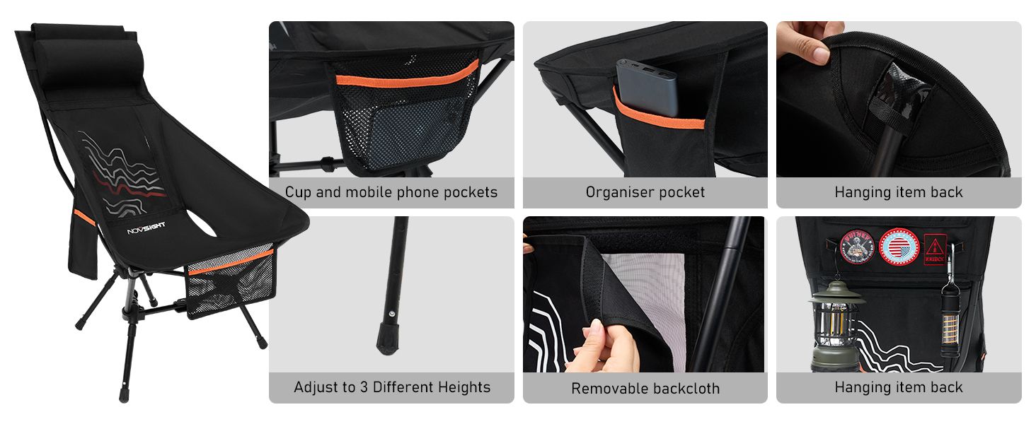 NOVSIGHT Camping Chair Folding Portable Camp Chair for Adults Hiking Backpacking