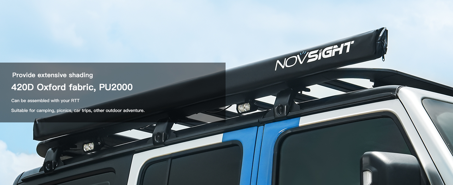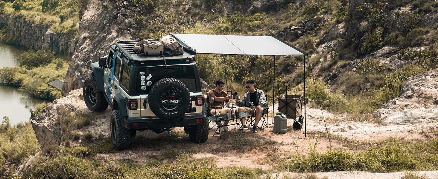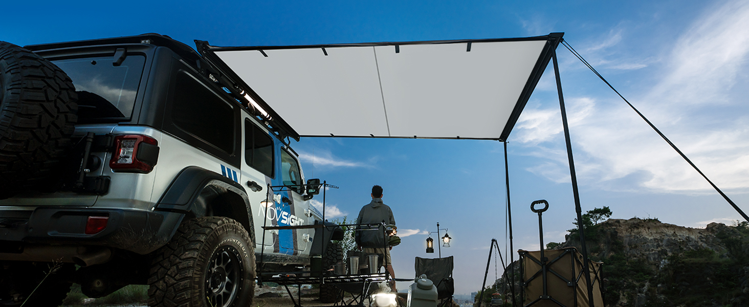 NOVSIGHT Car Side Awning 6.6'x6.6' Rooftop Sun Shade Vehicle Yard Shelter Camping Travel