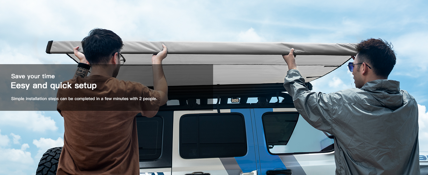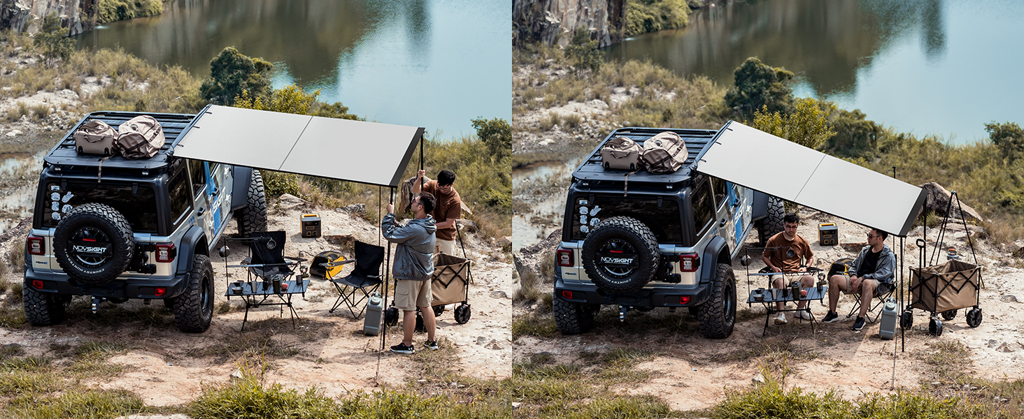 Quick Installation: Installation or disassembly can be completed in just a few seconds.After folding,The car awning camping retractable is compact,lightweight, and easy to carry.