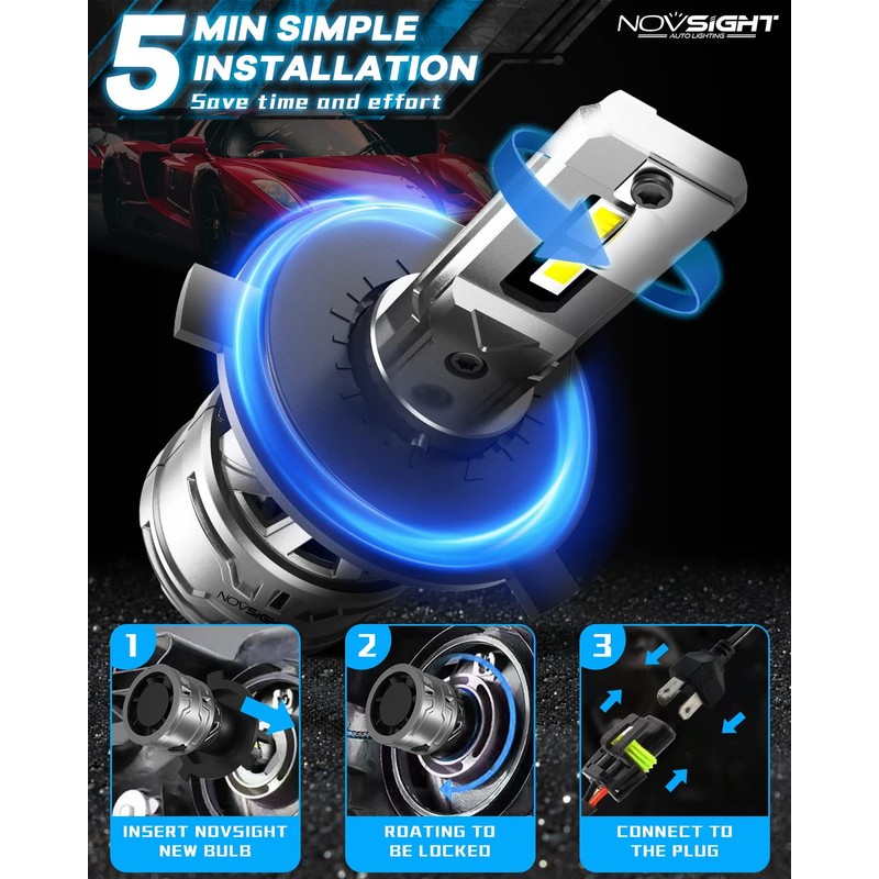 - 【Effortless Installation in Minutes】: NOVSIGHT H4/9003/HB2 LED Headlight bulbs boast a hassle-free plug-and-play design. With an integrated driver and compact form factor, installation is swift and straightforward. Enjoy the ease of upgrading your vehicle's lighting system in just 5 minutes.