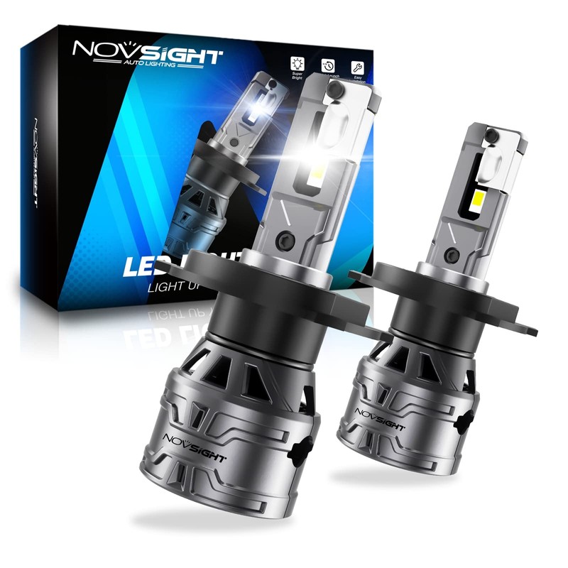 - 【Long-Lasting Performance】: Crafted with aviation aluminum and equipped with a built-in mute turbofan, NOVSIGHT H4 LED Headlight bulbs are engineered for durability. They maintain a steady performance, extending their lifespan up to 100,000 hours. Say goodbye to frequent bulb replacements.
