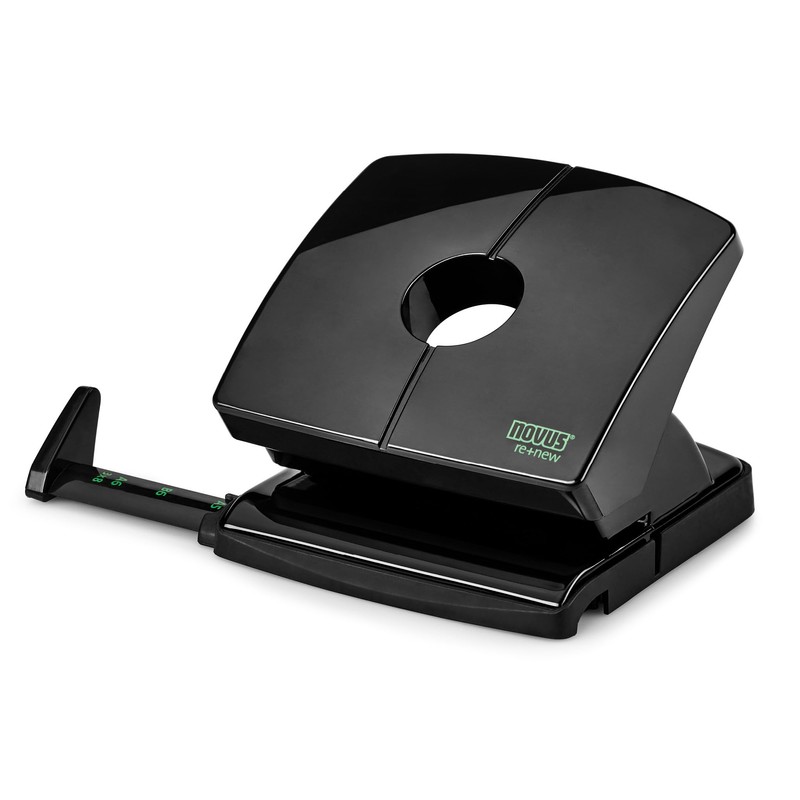 Novus B 220 re+new Hole Punch (Plastic Top Made from Sustainable Recyclate, 20 Sheets, with Stop Rail) Black