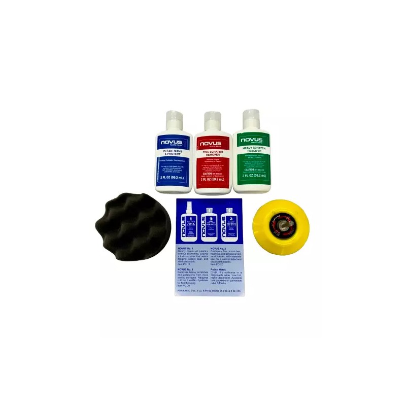 NOVUS Plastic Polish can rejuvenate and breathe new life into thousands of everyday products, such as toys, car headlights, boat instruments, appliances, and so much more. Recommended by manufacturers of plastic products, our 3-step system can clean plastics without scratching, restore faded plastic and acrylic surfaces, and repair heavy abrasions.