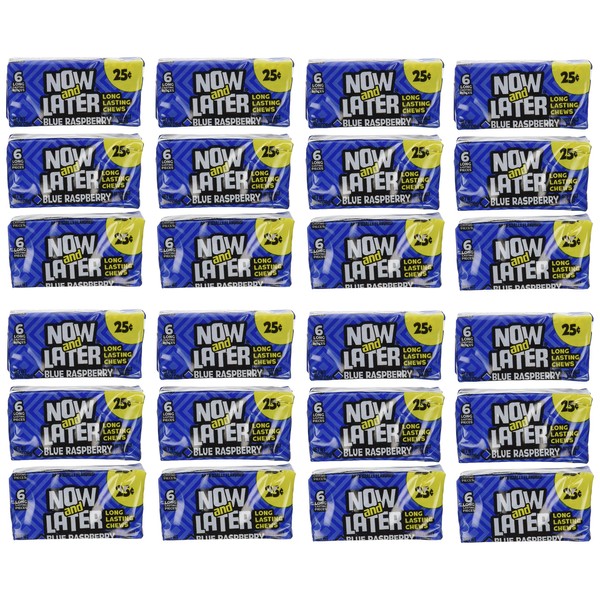 Now and Later Blue Raspberry Flavored Candy Twenty-Four 6-Piece Bars