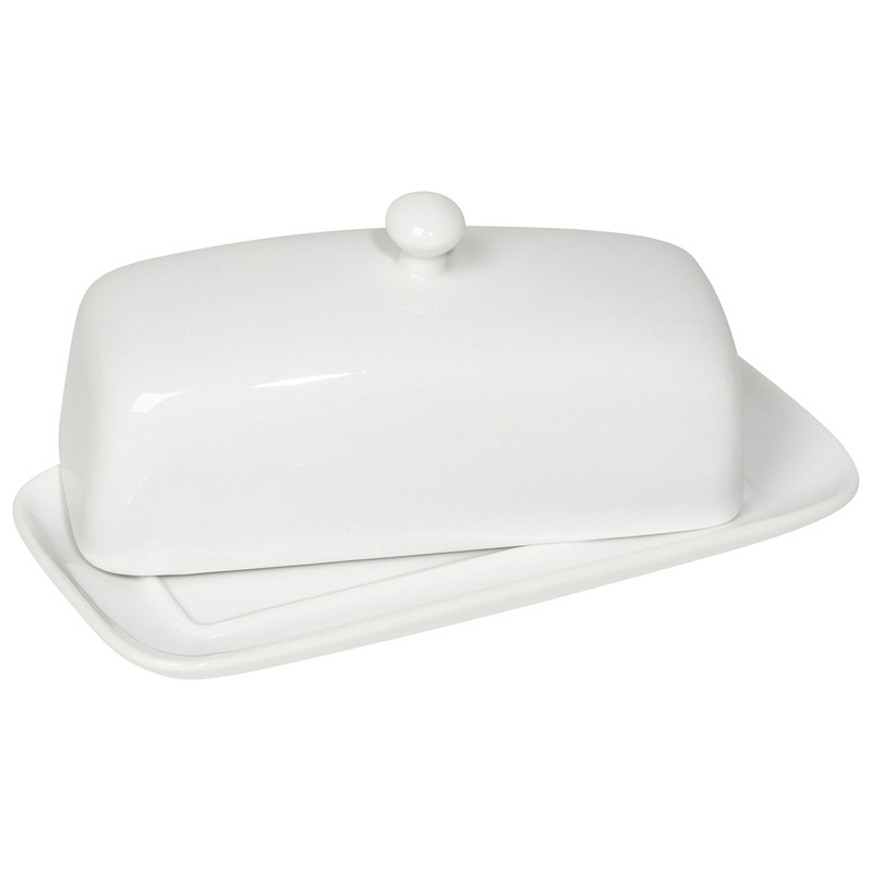 - A traditional, rectangular white butter dish looks great in any type of kitchen