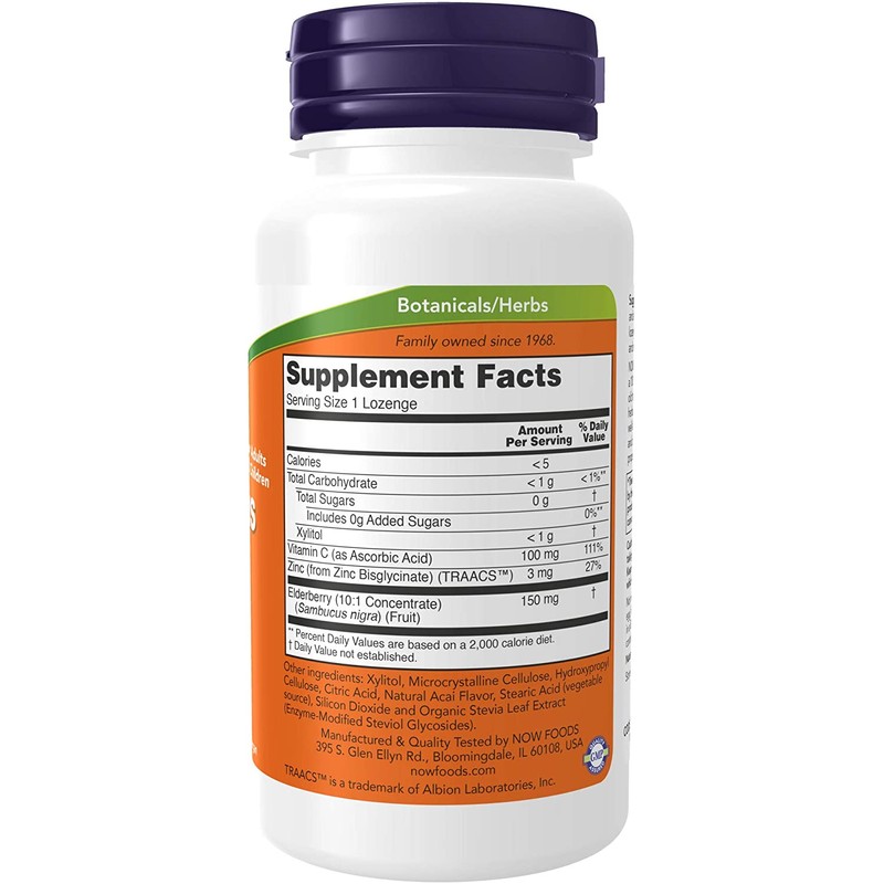 NOW Foods NOW Supplements, Sambucus Zinc-C with Elderberry Concentrate and Vitamin C, 60-Lozenges