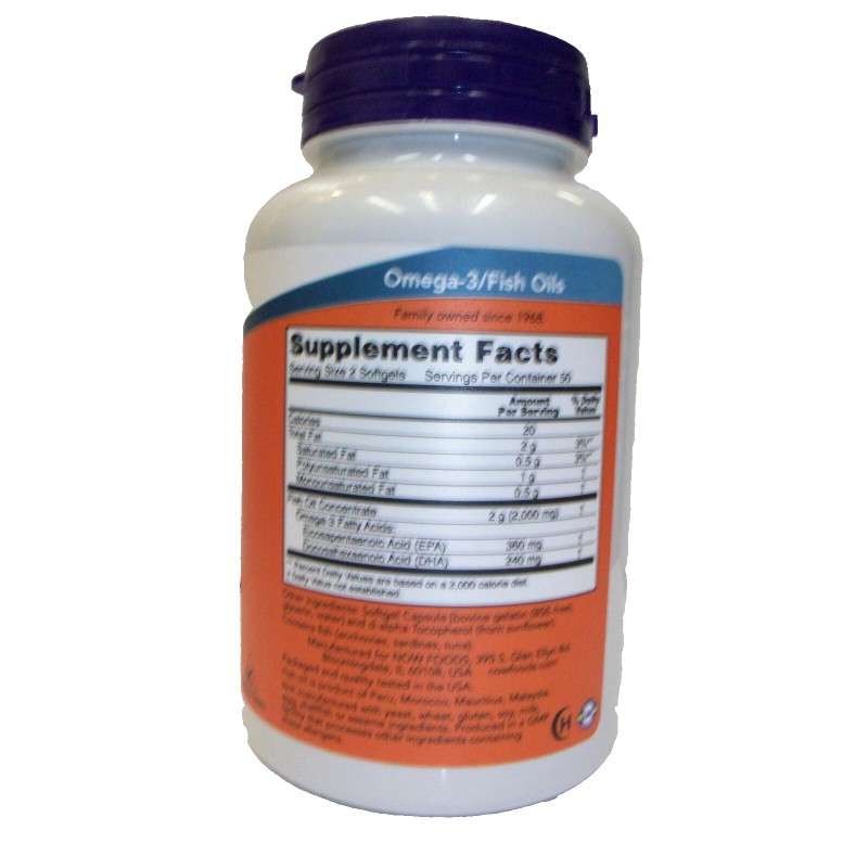 NOW Foods Omega-3 Fish Oil (Molecularly Distilled) 1,000 mg 100 Softgels