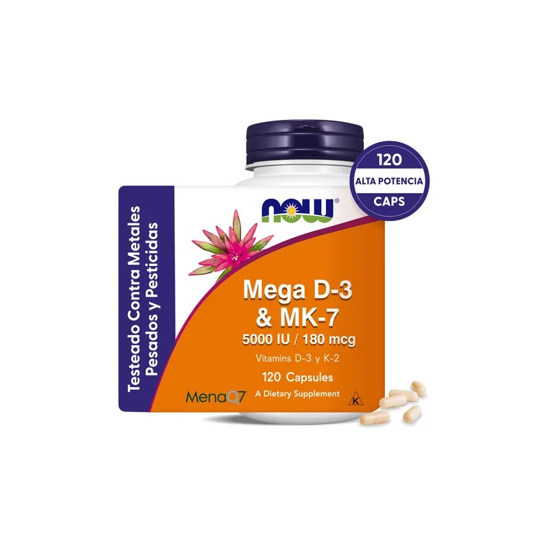 Sumérgete en el universo de Now Foods, el gigante estadounidense de suplementos naturales formulados por doctores, ¡ahora a tu alcance en México! 🇲🇽 Desde 1968, nuestra misión ha sido una: priorizar la calidad y seguridad en cada cápsula que creamos. Imagina un suplemento que no solo te entrega Vitamina D3, sino que la combina con el poder de la Vitamina K2 (MK7) en una sinfonía perfecta para tu salud ósea y cardiovascular. 🎶 Estamos hablando de 120 cápsulas de pura vitalidad, cada una repleta con 5000 IU de Vitamina D3 y MK7, diseñadas para ofrecerte una dosis súper concentrada que maximiza su efectividad en tu organismo. 🚀