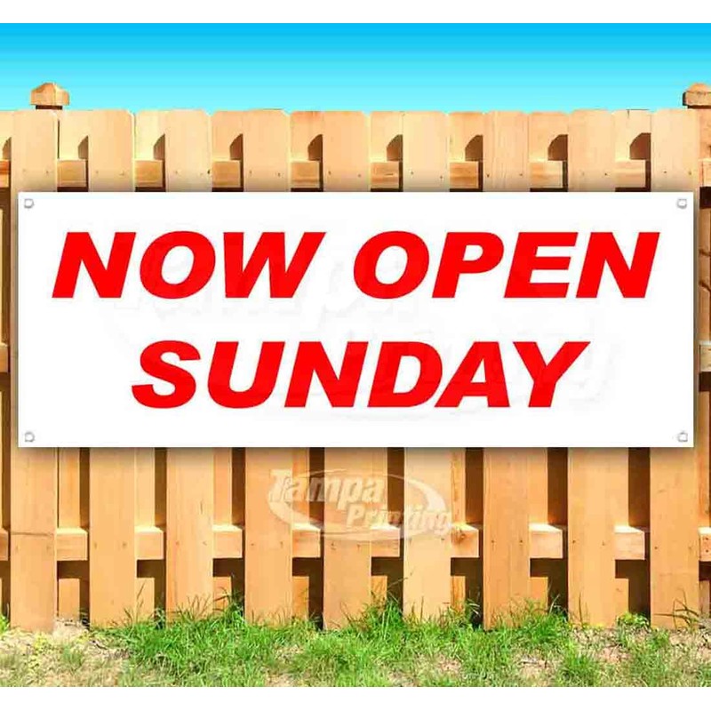 Now Open Sunday Banner 13 oz | Non-Fabric | Heavy-Duty Vinyl Single-Sided With Metal Grommets
