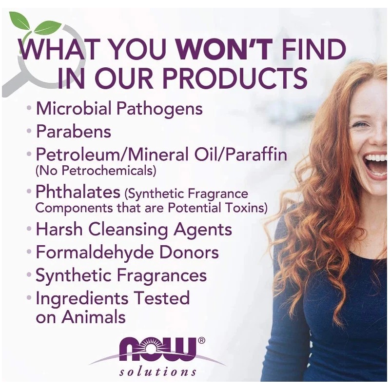NOW® Solutions is the next step in the evolution of personal care products. This comprehensive natural line encompasses moisturizers and serums, bath and body oils, shampoos and conditioners, oral care, skin care, and essential oils, all of which are formulated with the finest functional ingredients from around the world. NOW® Solutions products avoid harsh chemicals and synthetic ingredients in our formulations, to provide a more natural product line.