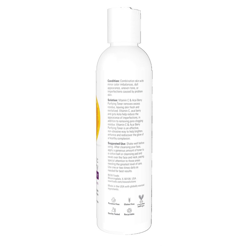 NOW Solutions, Vitamin C and Acai Berry Purifying Toner, Brightening System, Removes Pore-Clogging Residue, 8 Fl Oz (Pack of 1)
