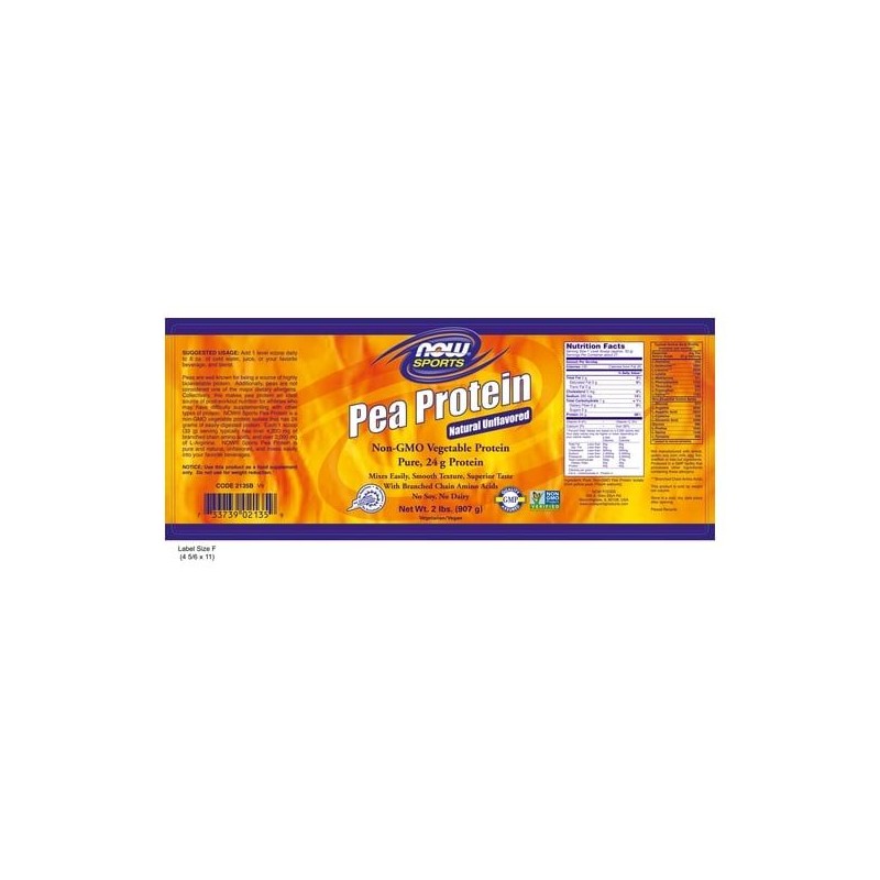 Now Sports Pea Protein is a Non-GMO pure vegetable protein that contains 28 g of easily digestible protein per serving and more than 4,800 mg of branched chain amino acids and over 2,000 mg of L-Arginine. Now Sports Pea Protein is 100% pure and natural, tasteless and mixes easily.