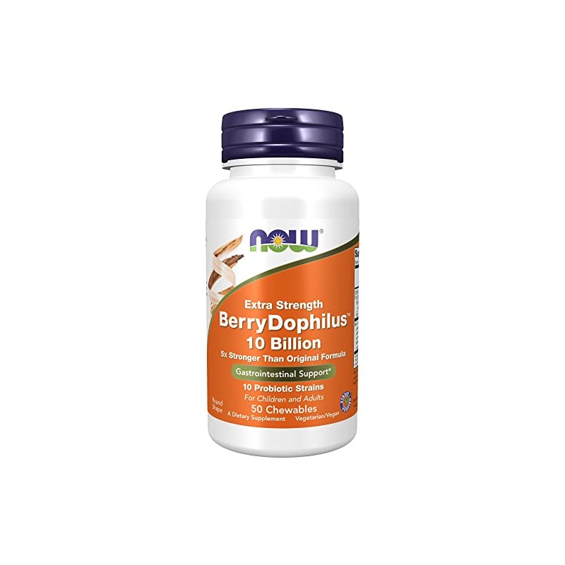 NOW Supplements, BerryDophilus, Developed for Adults & Children with 10 Probiotic Strains, Extra Strength,Strain Verified, 50 Chewables