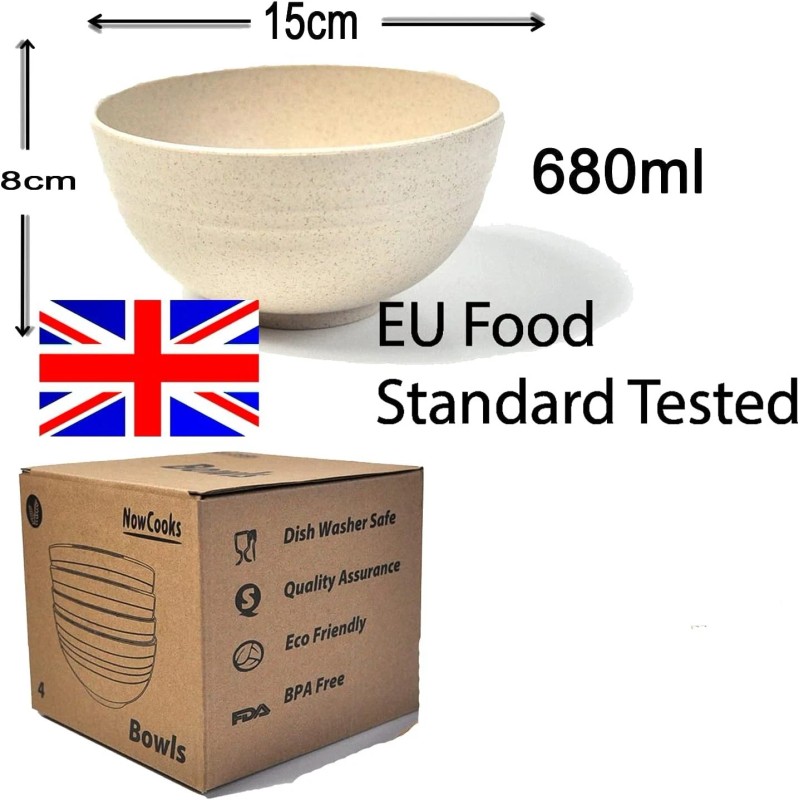 NowCooks 4-Pack Unbreakable Cereal Bowl Set 24oz Mixed Colors Microwave &Dishwasher Safe