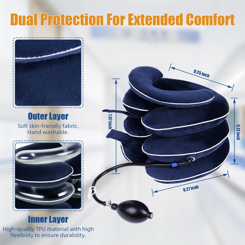 • 【Effective Traction, Say Goodbye to Neck Pain】 Feel the weight of the world lift from your shoulders. Unlike basic pillows that only offer passive support, this professional-grade cervical traction device actively works to decompress your spine. With a few simple pumps, you create gentle separation between your vertebrae, helping to alleviate nerve pressure, ease stiffness, and melt away the tension from long hours at your desk. It's not just temporary relief; it's a proactive step towards reclaiming your comfort and focus.