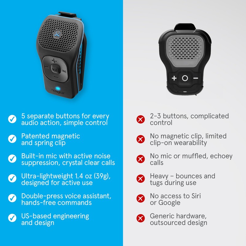 noxgear 39g Wearable Bluetooth Speaker, Magnetic Mini Clip-On, Waterproof Up to 15 Hours Playtime | Clip On Bluetooth, Wearable Speaker with Microphone, 100ft Range