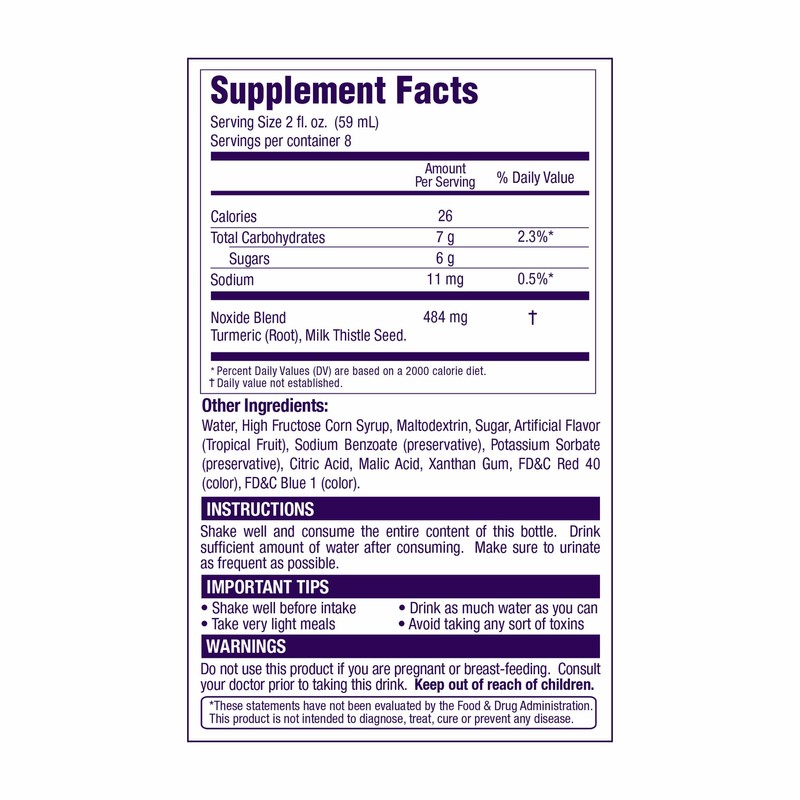 - DIRECTIONS – Drink 1 bottle once a day for 3 days on an empty stomach. Drink around 3-4 cups of water along with Noxide. SHAKE WELL before drinking.