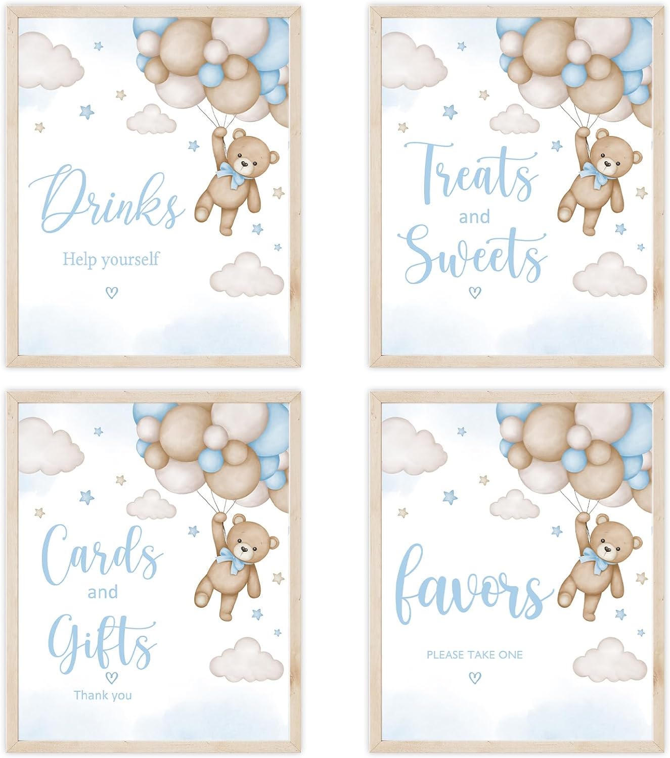 - You will get 8*10 inche 4 pcs different blue bear quotes for baby shower decorations.Unframed prints.
