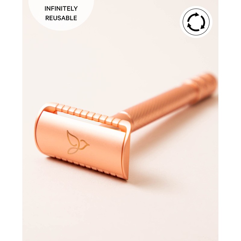 Noya Rose Metal Safety Razor for a Skin-friendly Zero Waste Shave with 5 Blades for Face and Body Unisex